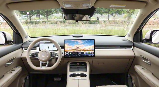 进入车内,内饰采用 “科技简约 + 场景实用” 的设计思路,中控台布局规整,搭载悬浮式中控屏与全液晶仪表,配合高通 8155 芯片,操作流畅无卡顿,支持豆包大模型语音交互,可识别方言与连续指令,老人小孩都能轻松使用。用料上虽以硬质塑料为主,但关键区域采用软性材质包裹,搭配细腻缝线,符合该价位的品质预期。空间表现方面,2785mm 轴距带来 3162mm 的车内有效空间。身高 178cm 的乘客调整好主驾坐姿后,头部仍有一拳两指余量;后排腿部空间更是达到两拳多,纯平地板设计让中间乘客无需蜷腿。